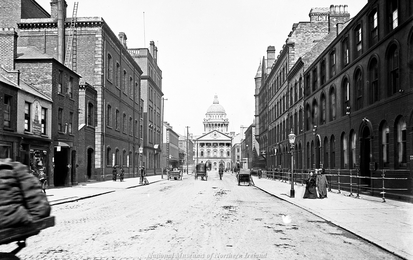 It's the afternoon here in Linenhall Street in August 1913 and in the distance